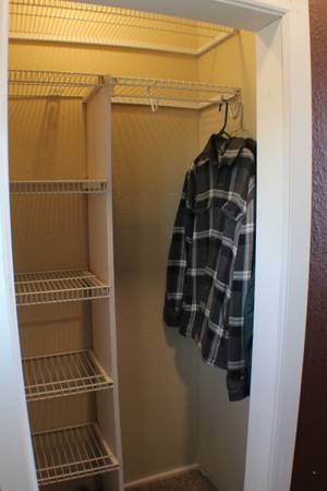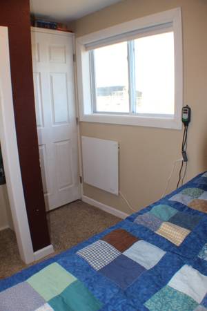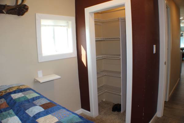 -Bedroom: Built-in twin bed with room for a full or queen. Plenty of room for your dream storage set-up under and around the bed. Plus a closet with hanging space and shelves. Includes one large window and one smaller window.