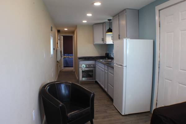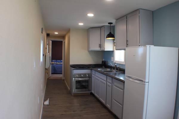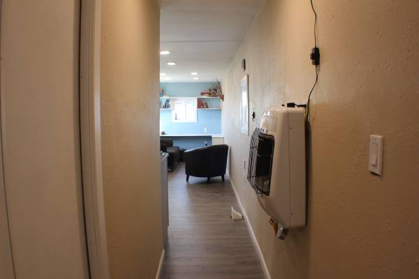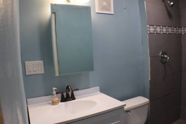 -Bathroom: Features a shower, vanity, and toilet, with a hallway for added privacy (no walk-thru design).