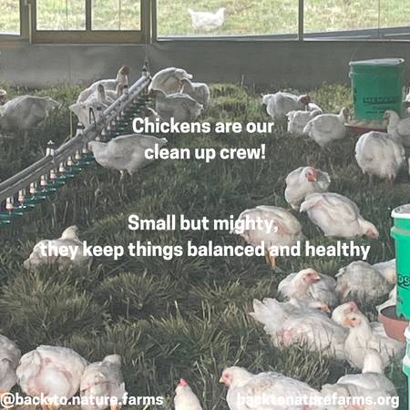 🐓 These little workers help to break down manure, eat pests and fertilize the soil as they go. Their scratching spreads nutrients and helps balance the ecosystem in our pastures.