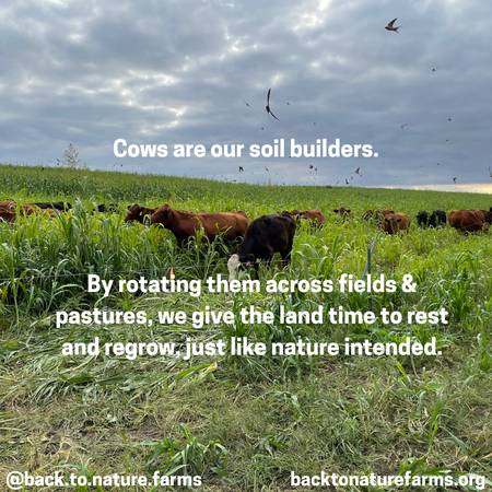 We are a regenerative farm in Nebraska and we offer grassfed beef, pasture raised pork and chicken!