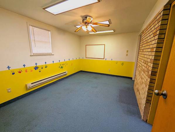 With open-zoning and over 4500 square feet, this well insulated solid brick building has 2 huge chambers with vaulted ceilings, perfect for server stacks, and not one but two powerful, young HVAC systems, as well as 5 other rooms that were used as classrooms and offices, 3 bathrooms, one with a shower, another with room for a shower, a plumbed baptismal font big enough for a spa tub, a utility room with two sinks and room for both a washer and dryer, a restaurant quality double steel sink in the large open kitchen that opens to a large living/dining space, there is enough living space separate from the vaulted ceiling sanctuary and vaulted ceiling half court gymnasium to qualify as a single family home on its own. It not only meets the size requirement laid out by the U.S. Department of Energy Better Buildings Small Data Centers Initiative, a far more sustainable option, but this town owns its own utilities and charges just 0.12 cents per kilowatt hour, a third of the lower end rates found in Silicon Valley and the Bay Area! Water rates are even better, and local farmers are selling their water rights for less than you would imagine and so many local convienences you wouldn't expect too (see video link to learn more)!