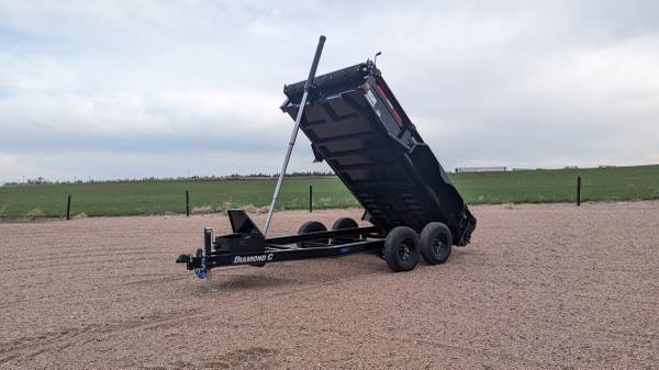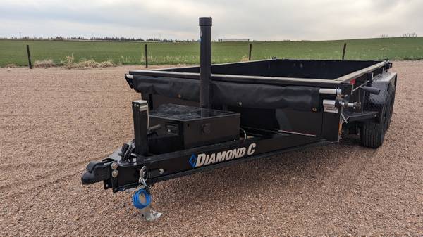 This MDT Diamond C dump trailer is 12 foot long and 77 inches wide.